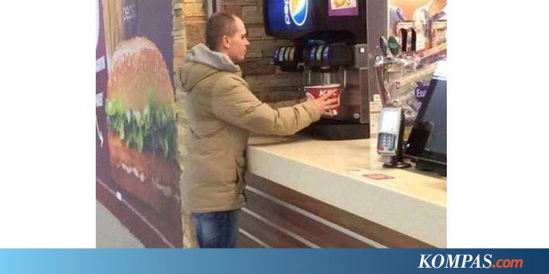 KANADA, KOMPAS.com - Seorang pria tertangkap kamera sedang memegang bucket atau ember untuk menyajikan hidangan ayam goreng dari restoran cepat saji Kentucky Fried Chicken ( KFC), untuk mengisi ulang minuman bersoda.