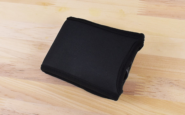 同商品は、約310(横)×80(縦)×10mm(厚み)ほどのドリンク用カバー。端にマジックテープがついており、直径9cmまでのボトルに装着できます。使うときは、まず本体から伸びるUSBケーブルをモバイルバッテリーなどにセット。電源スイッチなどはなく、繋いだ瞬間から徐々に温度が上がっていきます。