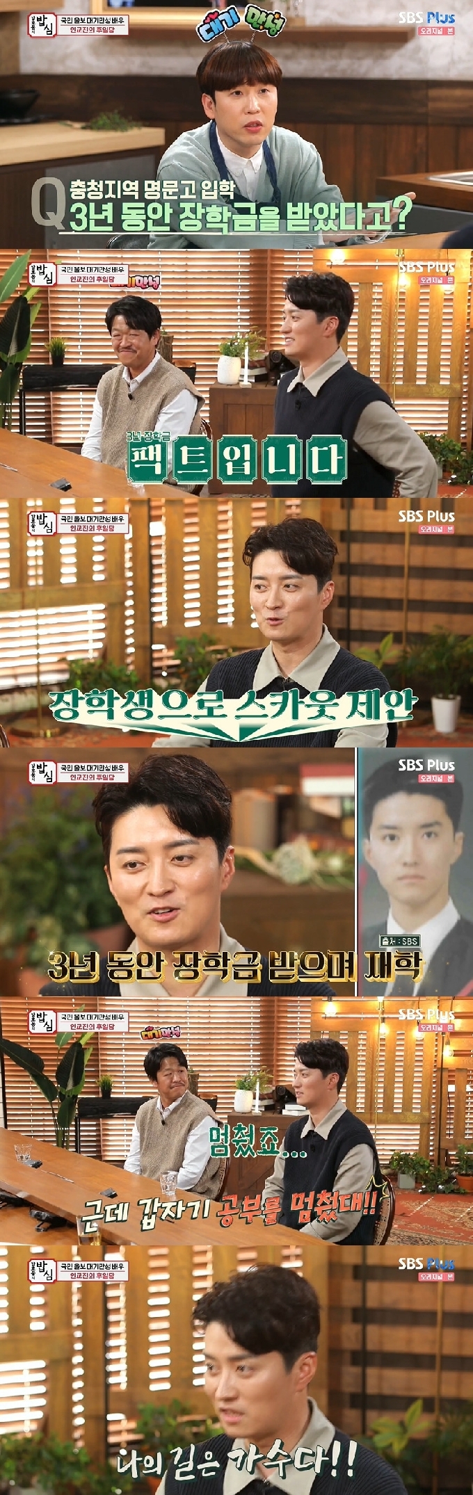 인교진은 "충청 지역 명문학교에서 3년 내내 장학금을 받았다던데"라는 MC 남창희의 말에 "팩트"라며 "중학교 때 고등학교를 선택하려던 시점에 고등학교 선생님이 학교를 홍보하러 오셨는데 장학금 주시겠다고 약속해주셔서 열심히 해봐야겠다 하고 3년 내내 장학금 받으면서 계속 다녔다"고 털어놨다.