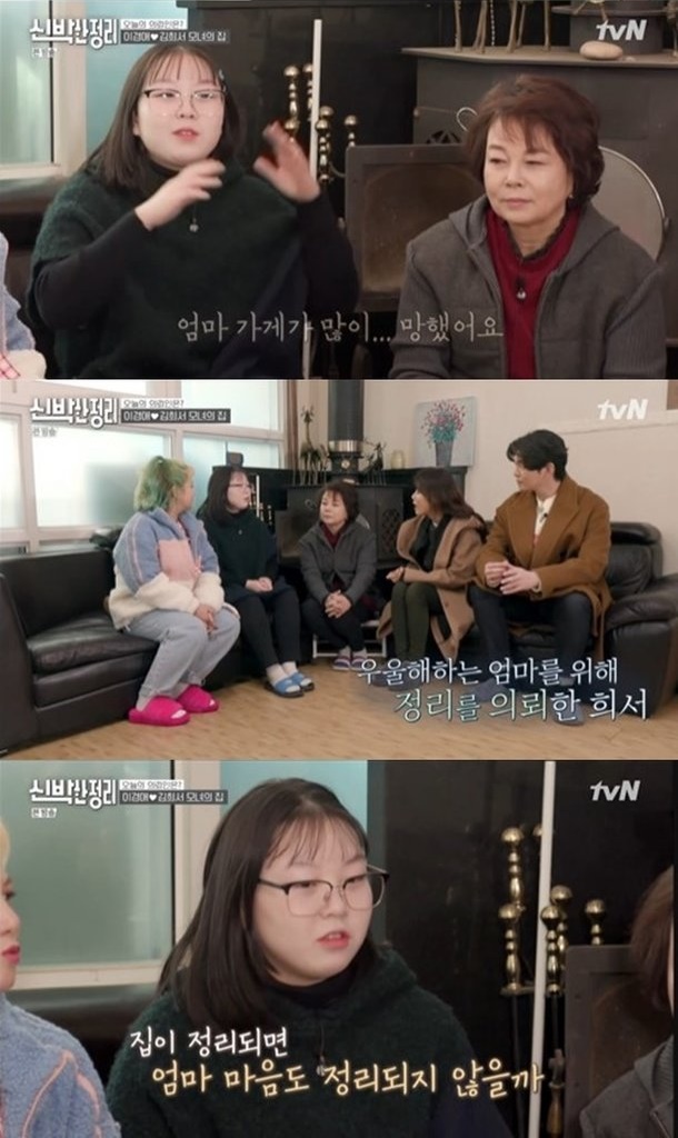 김희서는 "아버지가 투병을 하시다 돌아가신 뒤 엄마가 사업에 뛰어들었다가 많이 망했다"며 "정리한 가게 물건들이 있어 집이 어수선하다. 집이 정리되면 엄마 마음도 정리되지 않을까 싶어서 의뢰했다"고 밝혔다.