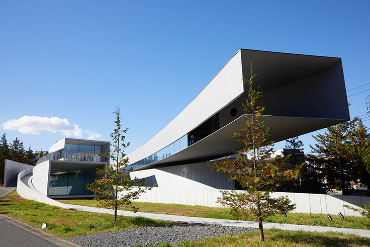 この美術館の大きな特徴の1つは、4つのチューブが重なり合う建築構造。その各チューブの幅・高さ・カーブがそれぞれ異なって不思議な空間を作り出しており、2011年の日本建築大賞をはじめ、千葉県建築文化賞や千葉市都市文化賞も受賞した“美術館そのものがアート”とも言える存在となっている。ギャラリー1は、一部鉄骨造によって空中に浮き、窓から森が見渡せる設計。今回の展覧会は、このギャラリー1で開催される。